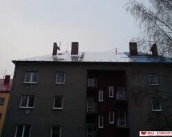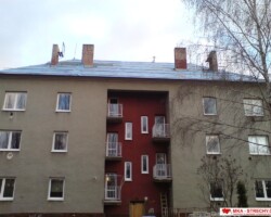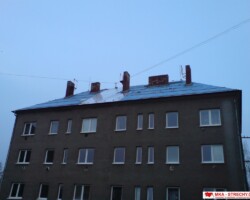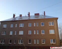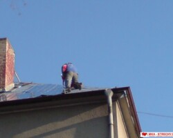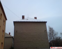 Byla stržena stará krytina a byla položena nová hliníková krytina vč. příslušenství (tj. oplechování, okapy, okna, prostupy, nášlapy, sněžníky atp.)