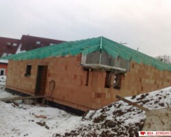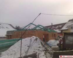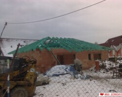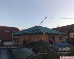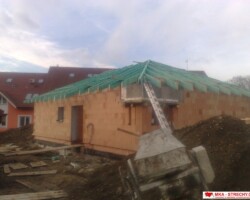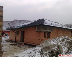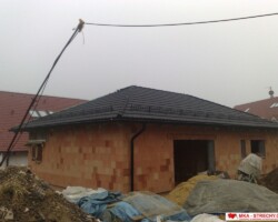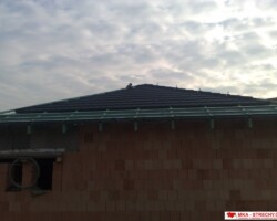 Na novostavbě RD byl vytvořen nový krov a montáž nové plechové krytiny vč. příslušenství (tj. oplechování, okapy, okna, prostupy, nášlapy, sněžníky atp.)