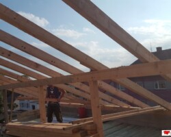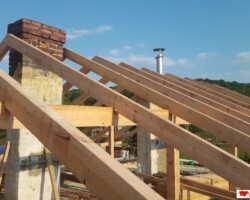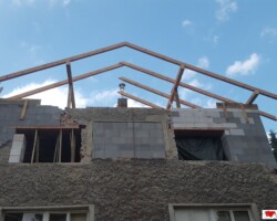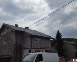 Na starším RD proběhlo zhotovení nového krovu a montáž nové hliníkové krytiny vč. příslušenství (tj. oplechování, okapy, okna, prostupy, nášlapy, sněžníky atp.)