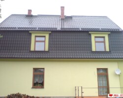 Na starší RD byla provedena montáž plechové krytiny s příslušenstvím (tj. oplechování, okapy, okna, prostupy, nášlapy, sněžníky atp.)