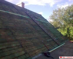 Po strhání staré krytiny na starším RD, došlo k montáži nové hliníkové krytiny s příslušenstvím (tj. oplechování, okapy, okna, prostupy, nášlapy, sněžníky atp.)