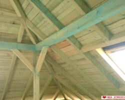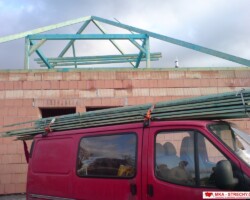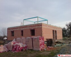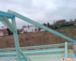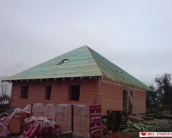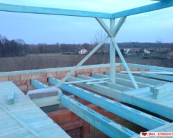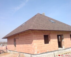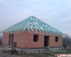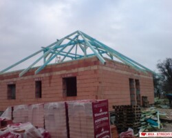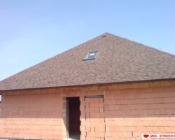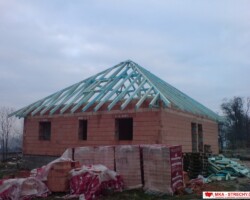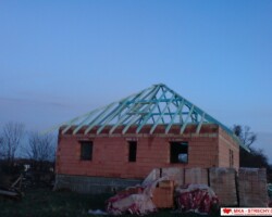 Na novostavbě RD byla vytvořena nosná konstrukce podlahy prvního patra, na kterém se postavily stojky nosné konstrukce krovu. Ten byl zakryt kvalitní střešní krytinou vč. příslušenství (tj. oplechování, okapy, okna, prostupy, nášlapy, sněžníky atp.)